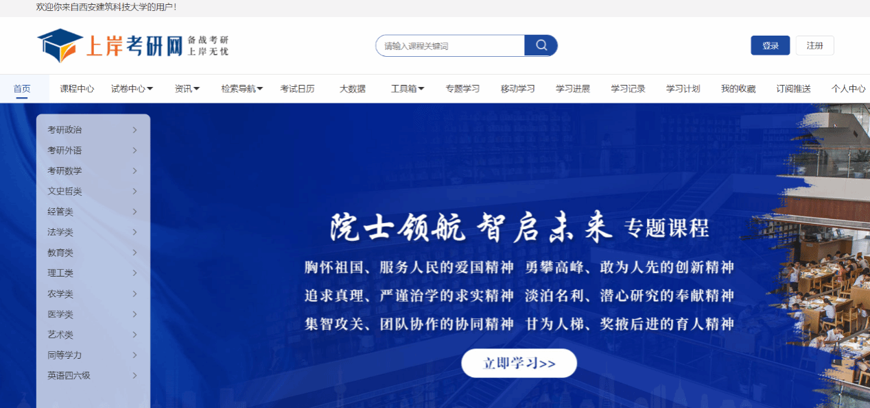 在校园IP范围内访问“上岸考研网”官网进行注册。