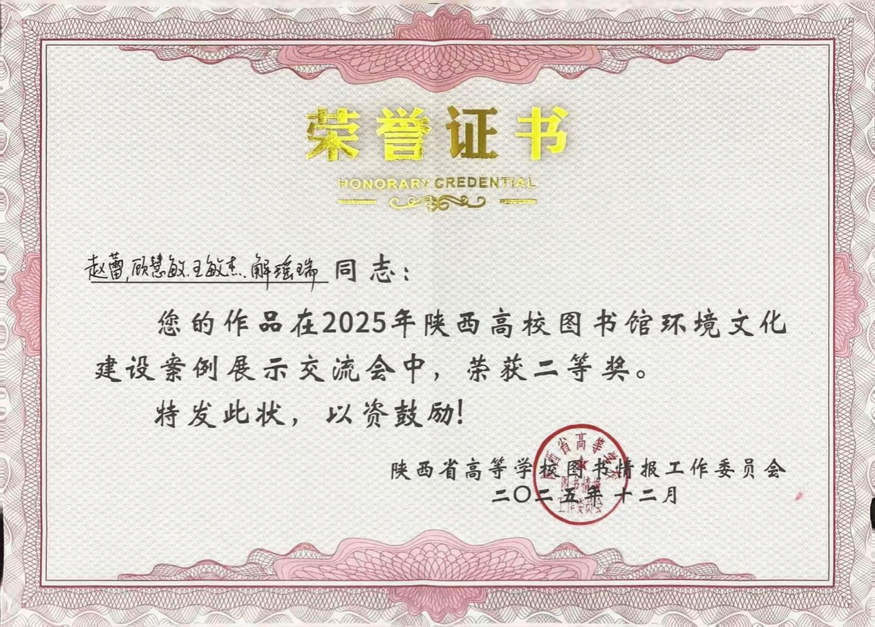12月17日,2025年陕西高校图书馆环境文化建设案例展示交流会在西北大学太白校区图书馆一楼报告厅顺利举办。本次交流会由陕西省高等学校图书情报工作委员会主办、西北大学图书馆承办,汇聚全省21所高校图书馆的110余名图书馆同仁,以案例展示为核心,搭建起高校图书馆环境文化建设的交流互鉴平台。我馆选送的案例在此次评选中表现亮眼,一举斩获特等奖1项、二等奖3项。