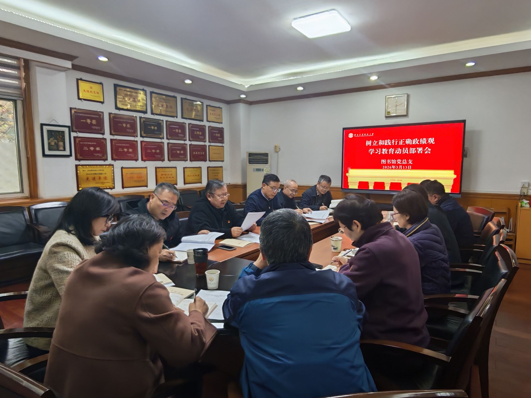 3月13日下午,图书馆党总支在雁塔图书馆一楼106会议室召开图书馆党总支理论学习中心组(扩大)学习会暨树立和践行正确政绩观学习教育动员部署会。图书馆党总支理论学习中心组全体成员及各支部书记参加会议,会议由党总支书记芦彦波主持。