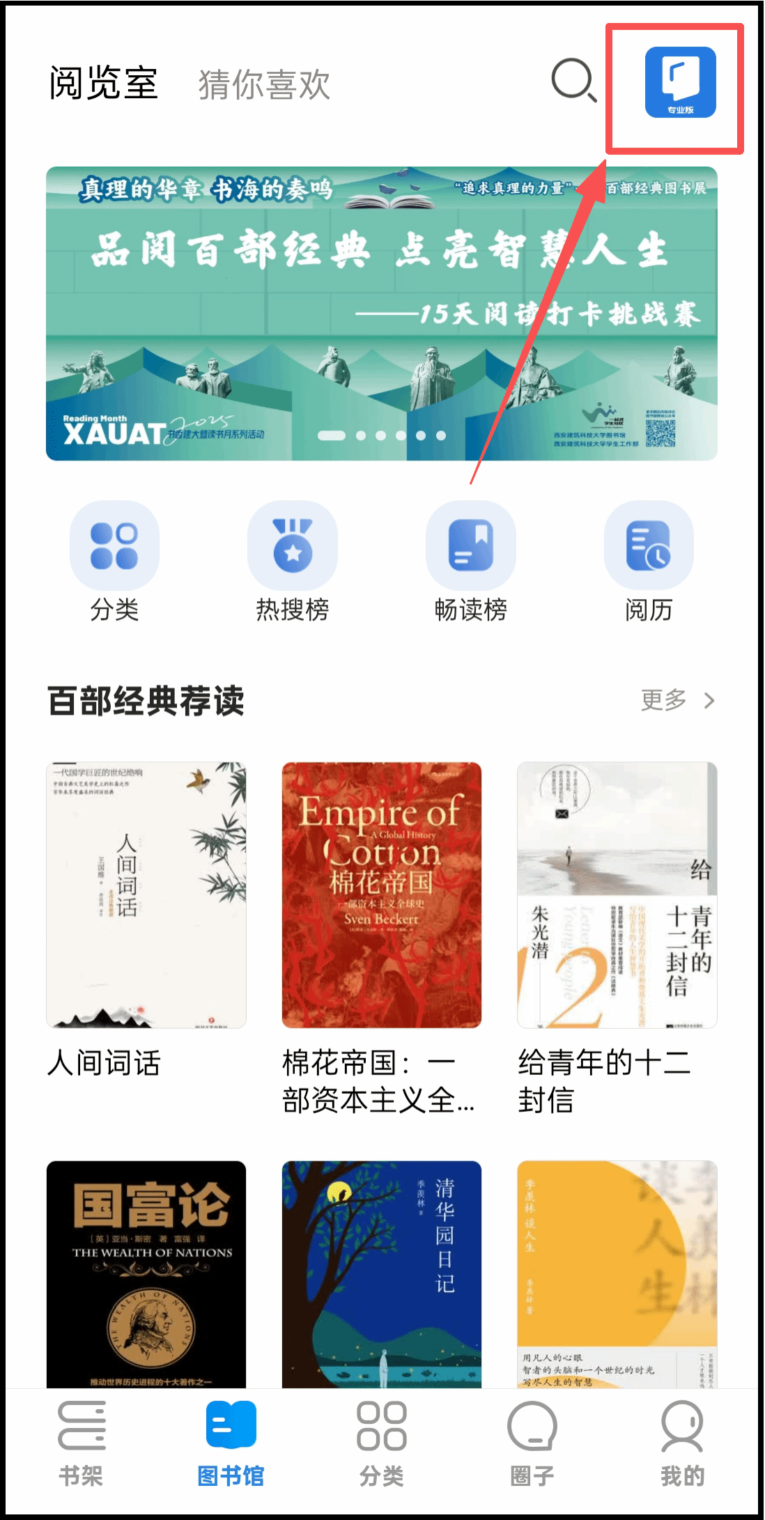 经典是人类文明的瑰宝,阅读经典是提升自我、涵养心性的重要途径。为鼓励广大读者养成持续阅读的好习惯,深入感受经典著作的魅力,我校图书馆、学生工作部(处)携手京东读书专业版 APP,特别推出 “品阅百部经典 点亮智慧人生” 15 天阅读打卡挑战赛,诚邀每一位热爱阅读的读者加入,在 15 天的时光里,与经典同行,用阅读点亮生活。