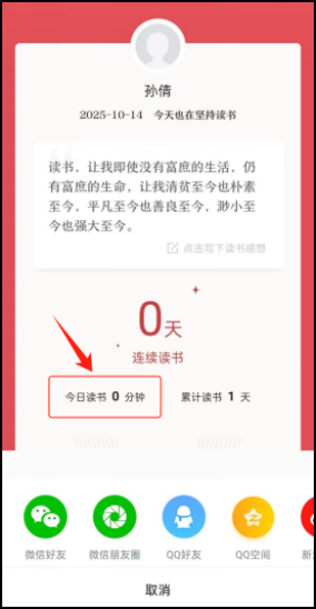 2.每日打卡:阅读时长达到15分钟及以上,自动完成每日打卡。